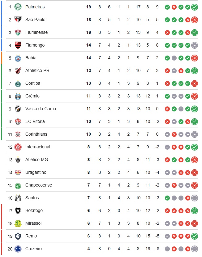 Com o resultado, o Flamengo chega a 14 pontos e ocupa a 4ª posição. O Corinthians, com 10 pontos, está em 10º lugar.